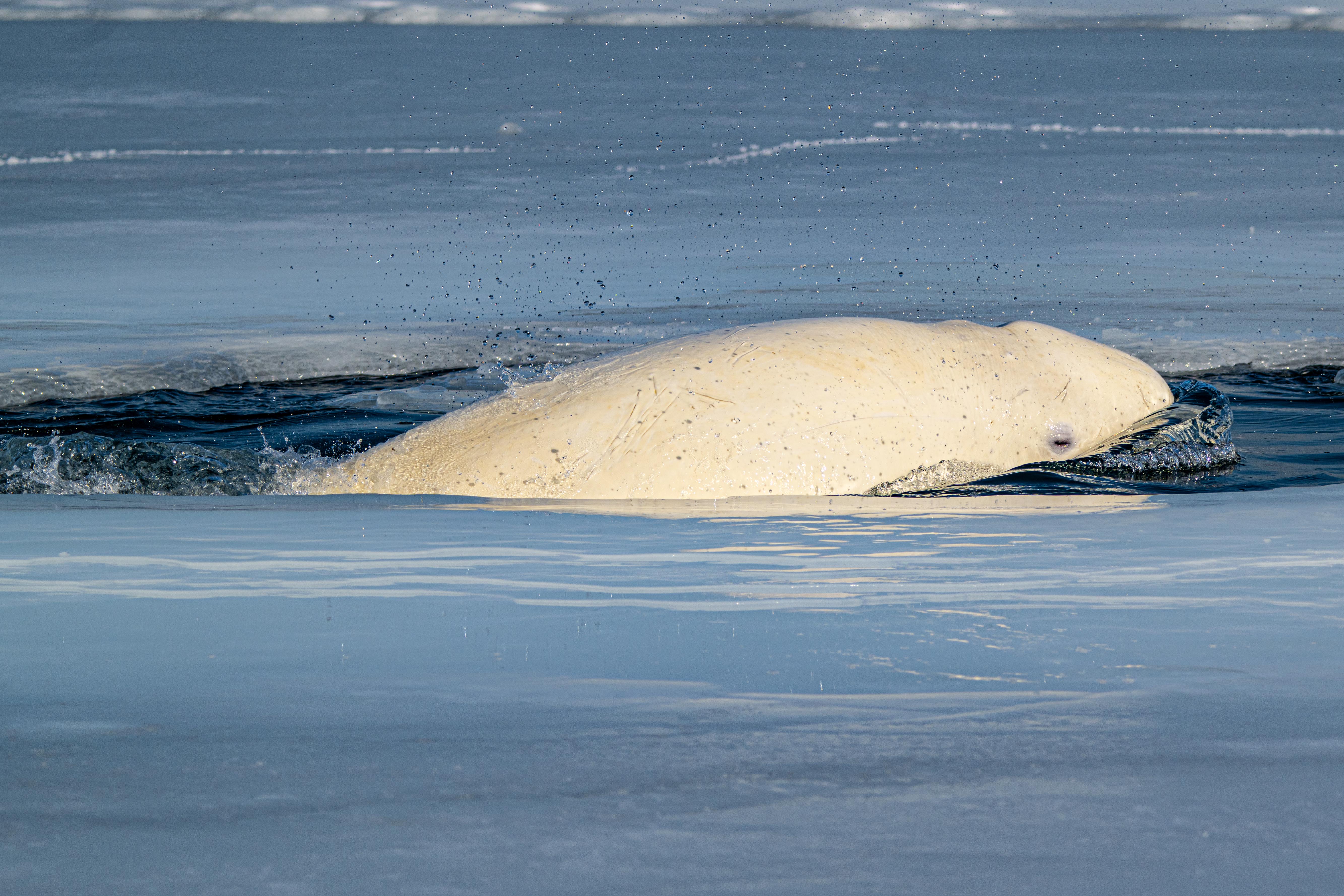 얼어있는 바다 중 살짝 녹아있는 구멍이 있는데 이 곳으로 야생의 벨루가들이