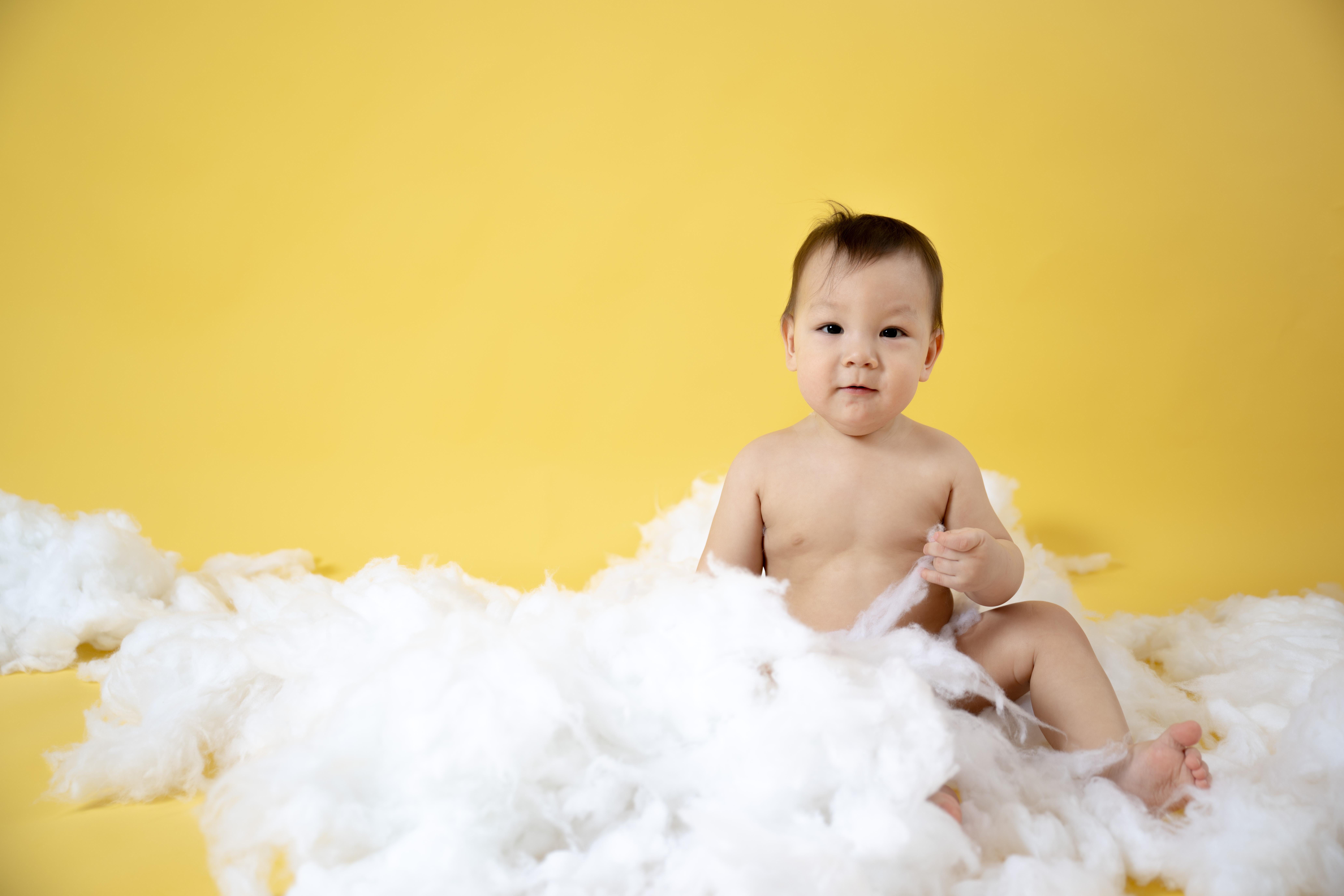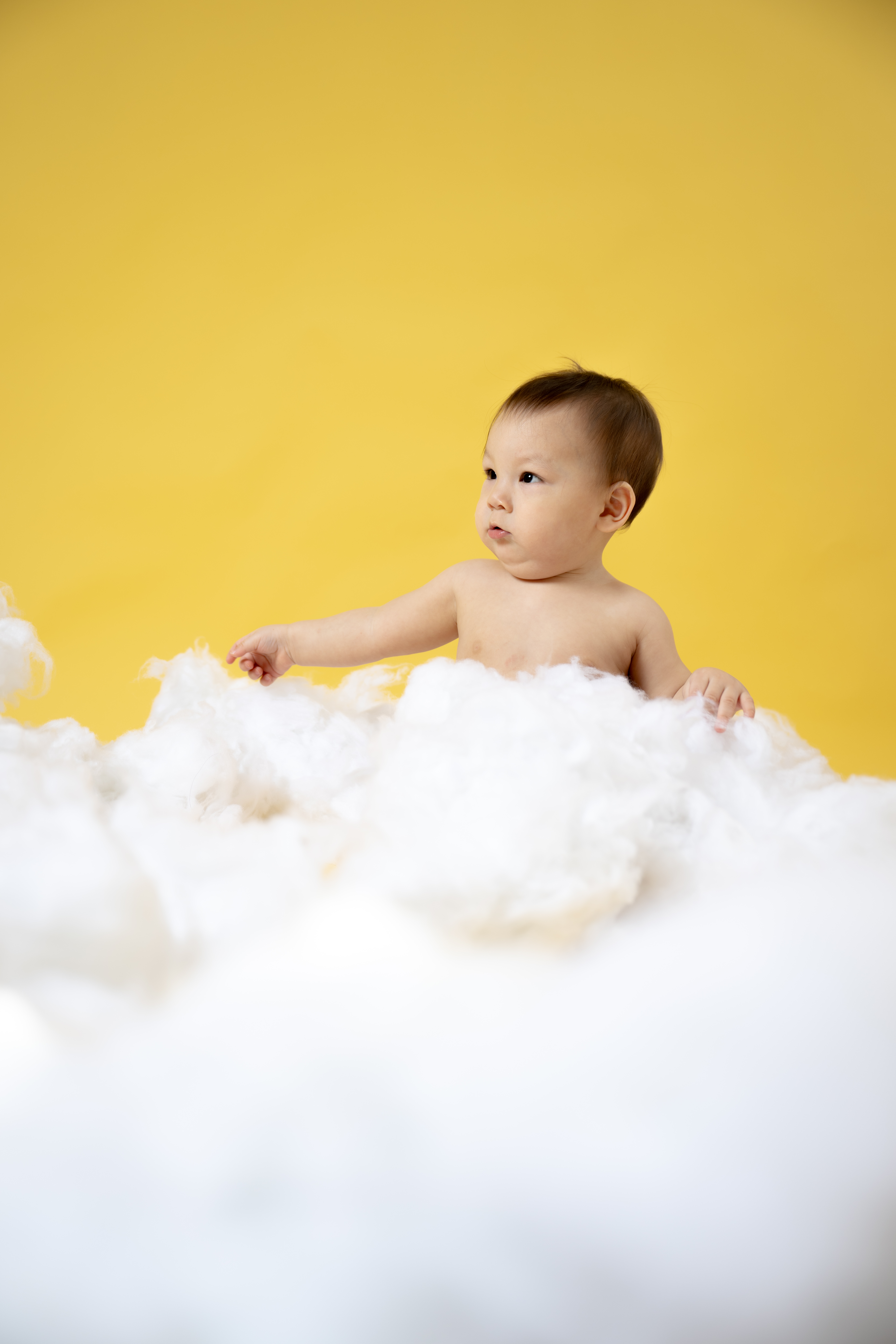 와이프가 출산전까지 사용하던 임산부용 배게를 뜯어서 구름으로 연출하였다