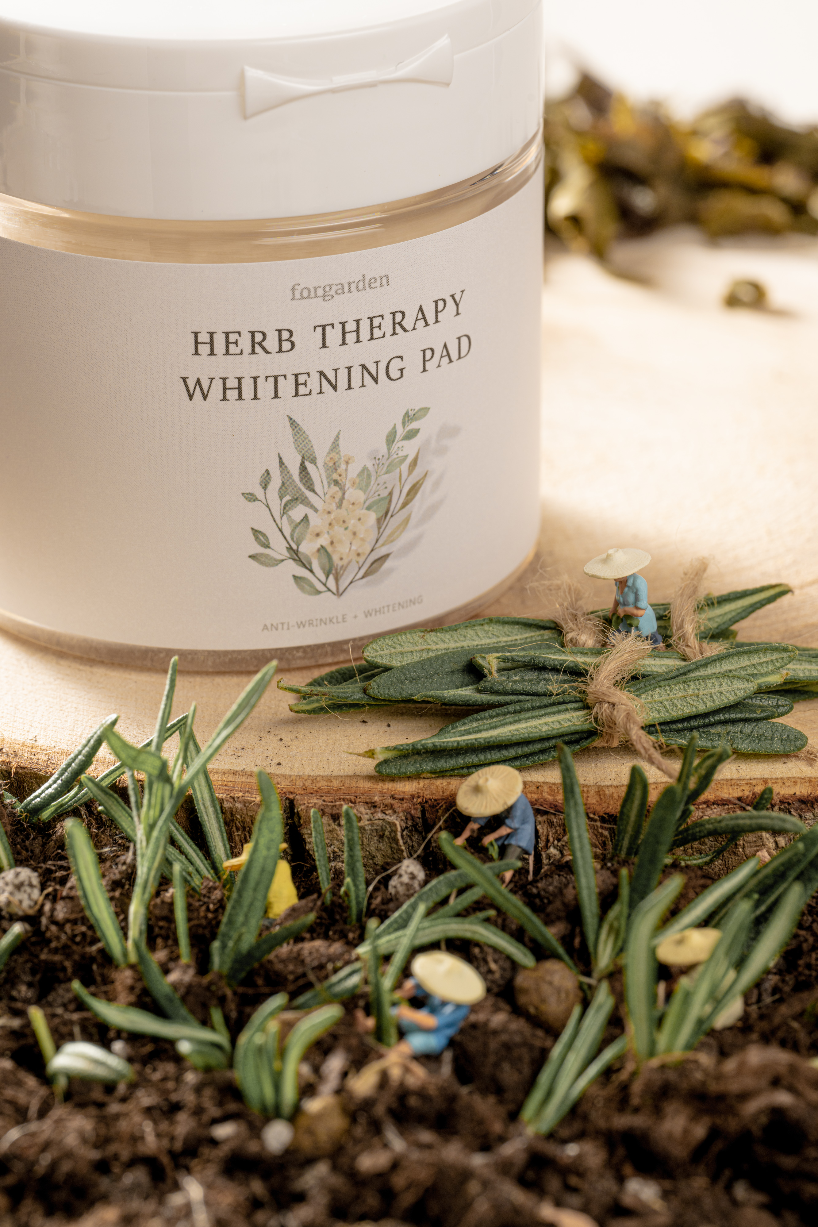 화분을 활용해서 농민들이 하나하나 손수 허브를 채집하는 것으로 느낌을 살려보았다.
